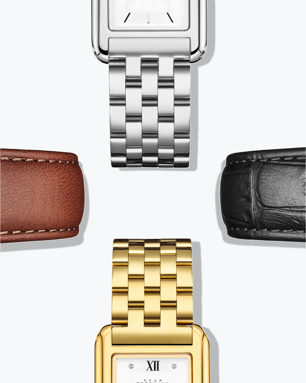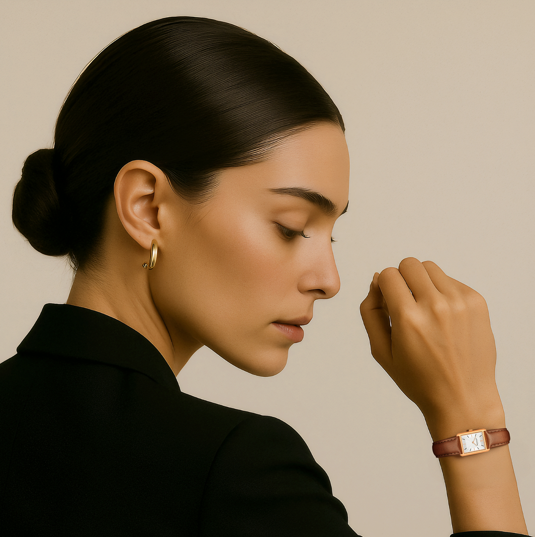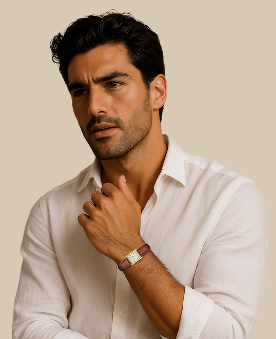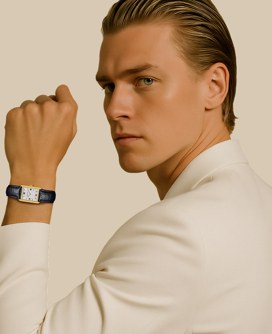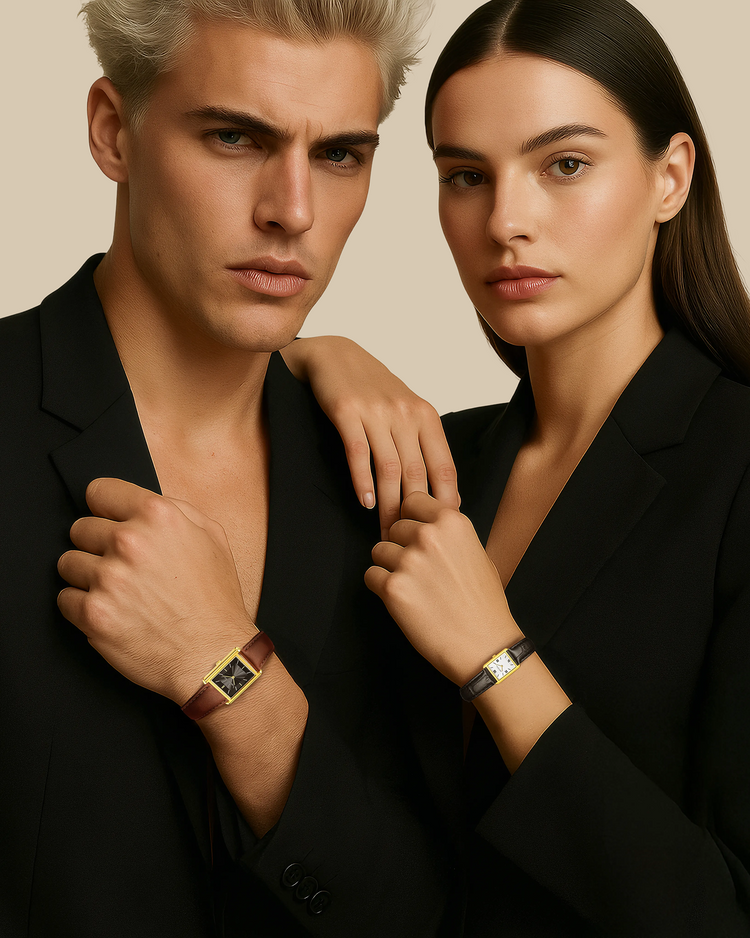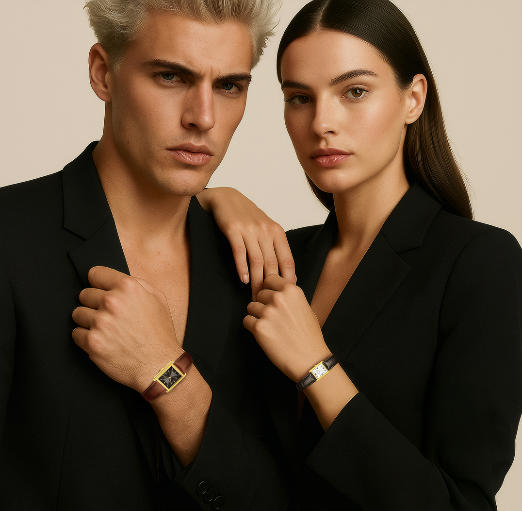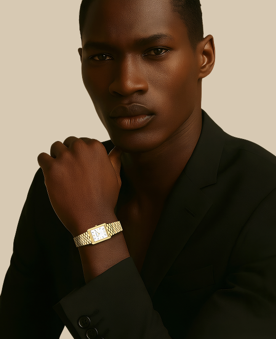 Time, distilled to its purest lines. Light catching polished edges in gold and steel, framed by our signature rectangular case. Each Dean Brochard watch is crafted with jewelry level finishing, enduring materials and carefully balanced proportions for everyday wear.