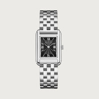 The Lueur Classique from the Lueur collection is a 26mm watch that exemplifies modern elegance. It features a gold polished stainless steel rectangular case paired with a clean black dial, protected by a durable sapphire glass. Secured with a matching ciel stainless steel bracelet and finished with a gold-plated butterfly clasp, this timepiece is powered by the reliable Japanese Miyota GL20 movement. A sophisticated expression of timeless style.