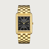 The Lueur Classique from the Lueur collection is a 31mm watch that exemplifies modern elegance. It features a gold polished stainless steel rectangular case paired with a clean black dial, protected by a durable sapphire glass. Secured with a matching ciel stainless steel bracelet and finished with a gold-plated butterfly clasp, this timepiece is powered by the reliable Japanese Miyota GL20 movement. A sophisticated expression of timeless style.