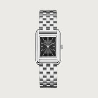 The Lueur Classique from the Lueur collection is a 26mm watch that exemplifies modern elegance. It features a silver polished stainless steel rectangular case paired with a clean black dial, protected by a durable sapphire glass. Secured with a matching ciel stainless steel bracelet and finished with a gold-plated butterfly clasp, this timepiece is powered by the reliable Japanese Miyota GL20 movement. A sophisticated expression of timeless style.