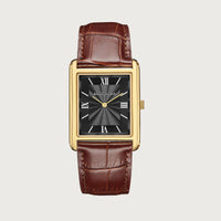 The Lueur Classique from the Lueur collection is a 31mm watch that exemplifies modern elegance. It features a gold polished stainless steel rectangular case paired with a clean black dial, protected by a durable sapphire glass. Secured with a Tentant Darkbrown croco leather strap and finished with a gold-plated butterfly clasp, this timepiece is powered by the reliable Japanese Miyota GL20 movement. A sophisticated expression of timeless style.