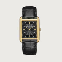 The Lueur Legende from the Lueur collection is a 31mm watch that exemplifies modern elegance. It features a gold polished stainless steel rectangular case paired with a clean white dial, protected by a durable sapphire glass. Secured with a Mysterieux Black croco leather strap and finished with a gold-plated butterfly clasp, this timepiece is powered by the reliable Japanese Miyota GL20 movement. A sophisticated expression of timeless style.