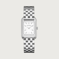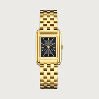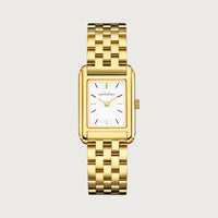 The Lueur Legende from the Lueur collection is a 26mm watch that exemplifies modern elegance. It features a gold polished stainless steel rectangular case paired with a clean white dial, protected by a durable sapphire glass. Secured with a matching ciel stainless steel bracelet and finished with a gold-plated butterfly clasp, this timepiece is powered by the reliable Japanese Miyota GL20 movement. A sophisticated expression of timeless style.