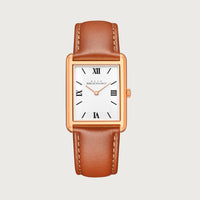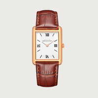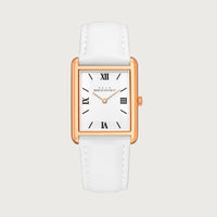 The Reveuse Classique from the Reveuse collection is a 23.0mm watch that exemplifies modern elegance. It features a rose gold polished stainless steel rectangular case paired with a clean white dial, protected by a durable sapphire glass. Secured with a Séduisant Black plain leather strap and finished with a gold-plated butterfly clasp, this timepiece is powered by the reliable Japanese Miyota GL20 movement. A sophisticated expression of timeless style.