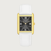 The Reveuse Legende from the Reveuse collection is a 23.0mm watch that exemplifies modern elegance. It features a gold polished stainless steel rectangular case paired with a clean black dial, protected by a durable sapphire glass. Secured with a Agréable White plain leather strap and finished with a gold-plated butterfly clasp, this timepiece is powered by the reliable Japanese Miyota GL20 movement. A sophisticated expression of timeless style.