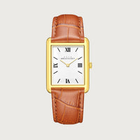 The Reveuse Legende from the Reveuse collection is a 23.0mm watch that exemplifies modern elegance. It features a gold polished stainless steel rectangular case paired with a clean white dial, protected by a durable sapphire glass. Secured with a Savoureux Light brown croco leather strap and finished with a gold-plated butterfly clasp, this timepiece is powered by the reliable Japanese Miyota GL20 movement. A sophisticated expression of timeless style.