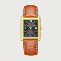 The Reveuse Legende from the Reveuse collection is a 23.0mm watch that exemplifies modern elegance. It features a gold polished stainless steel rectangular case paired with a clean black dial, protected by a durable sapphire glass. Secured with a Savoureux Light brown croco leather strap and finished with a gold-plated butterfly clasp, this timepiece is powered by the reliable Japanese Miyota GL20 movement. A sophisticated expression of timeless style.
