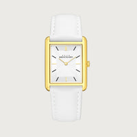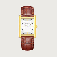 The Reveuse Legende from the Reveuse collection is a 26.0mm watch that exemplifies modern elegance. It features a gold polished stainless steel rectangular case paired with a clean white dial, protected by a durable sapphire glass. Secured with a Irrésistible Dark brown plain leather strap and finished with a gold-plated butterfly clasp, this timepiece is powered by the reliable Japanese Miyota GL20 movement. A sophisticated expression of timeless style.
