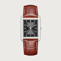 The Reveuse Legende from the Reveuse collection is a 23.0mm watch that exemplifies modern elegance. It features a silver polished stainless steel rectangular case paired with a clean black dial, protected by a durable sapphire glass. Secured with a Savoureux Light brown croco leather strap and finished with a gold-plated butterfly clasp, this timepiece is powered by the reliable Japanese Miyota GL20 movement. A sophisticated expression of timeless style.