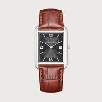 The Reveuse Legende from the Reveuse collection is a 23.0mm watch that exemplifies modern elegance. It features a silver polished stainless steel rectangular case paired with a clean black dial, protected by a durable sapphire glass. Secured with a Tentant Dark brown croco leather strap and finished with a gold-plated butterfly clasp, this timepiece is powered by the reliable Japanese Miyota GL20 movement. A sophisticated expression of timeless style.